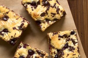 Ingredients 2 Tbsp. coconut oil 3 Tbsp. coconut sugar 1 egg, room temperature 2 ¼ cups almond flour 1/3 cup creamy almond butter 1 teaspoon baking soda 3 Tbsp. maple syrup 1 teaspoon vanilla extract 2/3 cup dark chocolate chips Instructions Preheat oven to 350˚F and line an 8 by an 8-inch baking pan with…