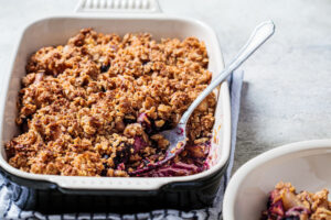 Ingredients for the Topping ½ cup finely ground almond flour 1/3 cup maple sugar or coconut sugar ½ teaspoon Celtic Sea salt ¼ teaspoon ground cinnamon ¼ teaspoon ground cardamom 5 Tbsp chilled ghee or coconut oil, cut into bite-sized pieces 1/3 cup whole raw pecans 1/3 cup whole raw almonds ½ cup unsweetened coconut…
