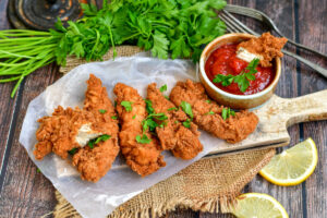 Ingredients ½ cup pickle juice 2 chicken breasts; cut into strips or nugget-sized 1 egg 1/3 cup almond flour ¼ cup tapioca or arrowroot flour ¾ teaspoon paprika ½ teaspoon garlic powder ¼ teaspoon onion powder 1 teaspoon salt ¼ teaspoon pepper Coconut or avocado oil to cook in Instructions 1. Combine pickle juice…